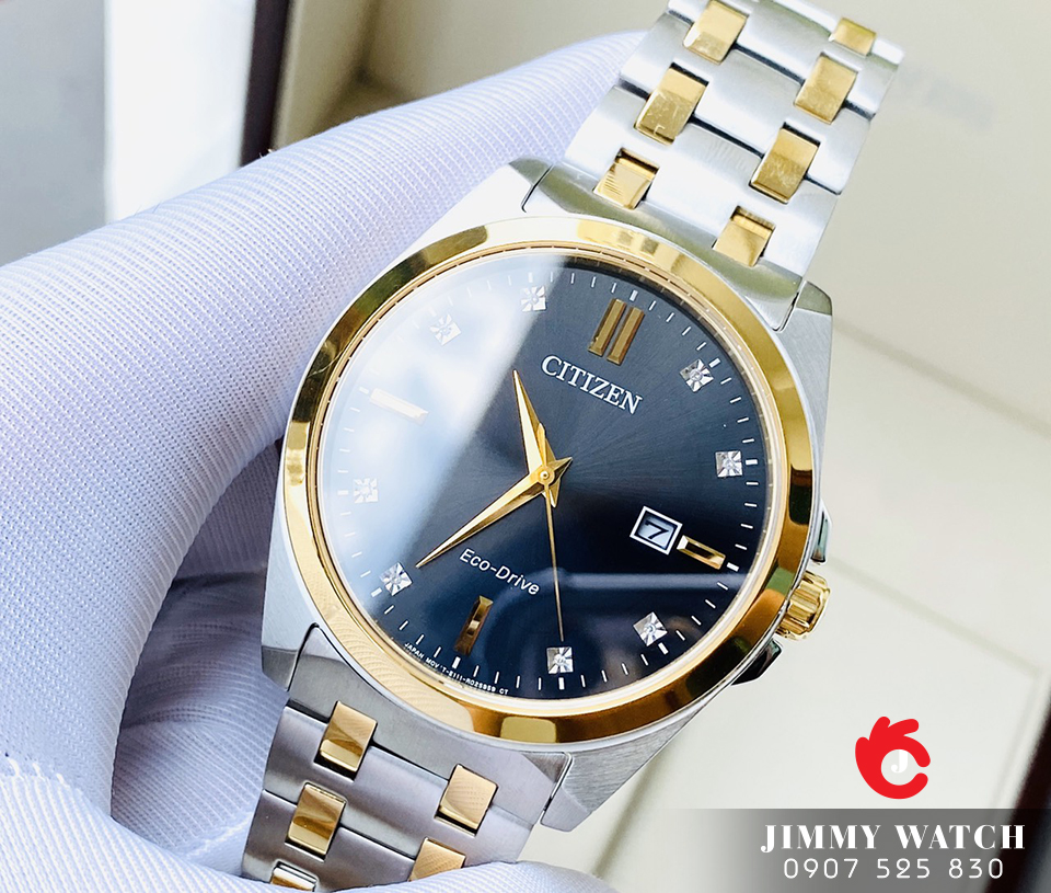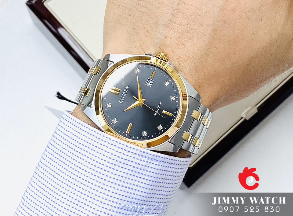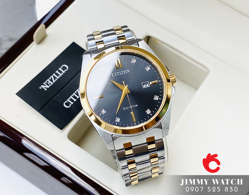 Citizen Eco-drive Corso Diamond BM7107-50E với thiết kế vô cùng sang trọng và đẳng cấp dành cho phái manh, chất liệu thép không gỉ mạ vàng PVD sang trọng, mặt xám vô cùng cuốn hút, điểm nhấn đặc biệt là cọc số với kim cương bắt mắt, kính chống trầy và bộ máy năng lượng ánh sáng vượt thời gian.