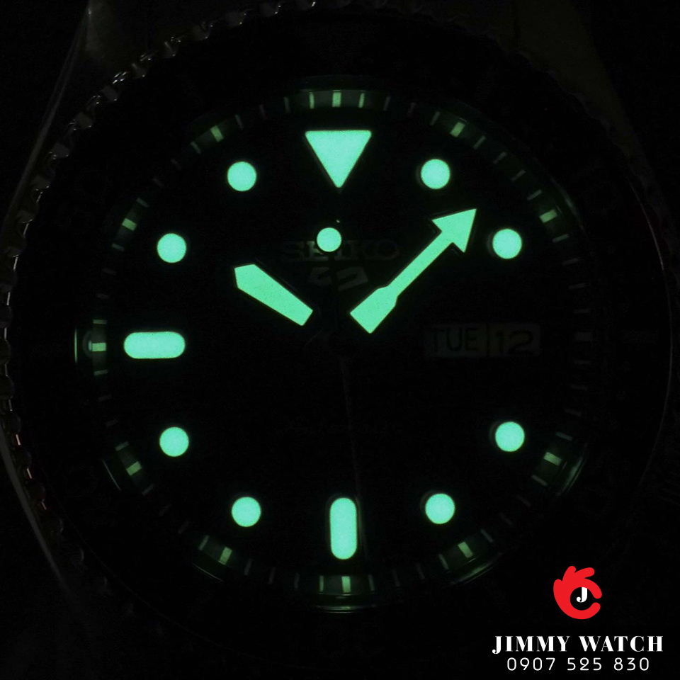 - Mặt số màu đen, kim + cọc số dạ quang.