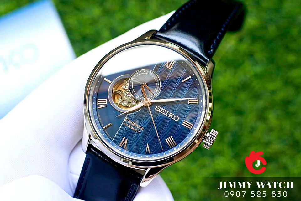 Phiên bản mới ra mắt với Dial xanh dương, được phối bộ dây da xanh đậm cùng tone ấn tượng, ô hở tim quyến rũ, điểm nhấn nổi bật là bộ kim và cọc số mạ rose gold!