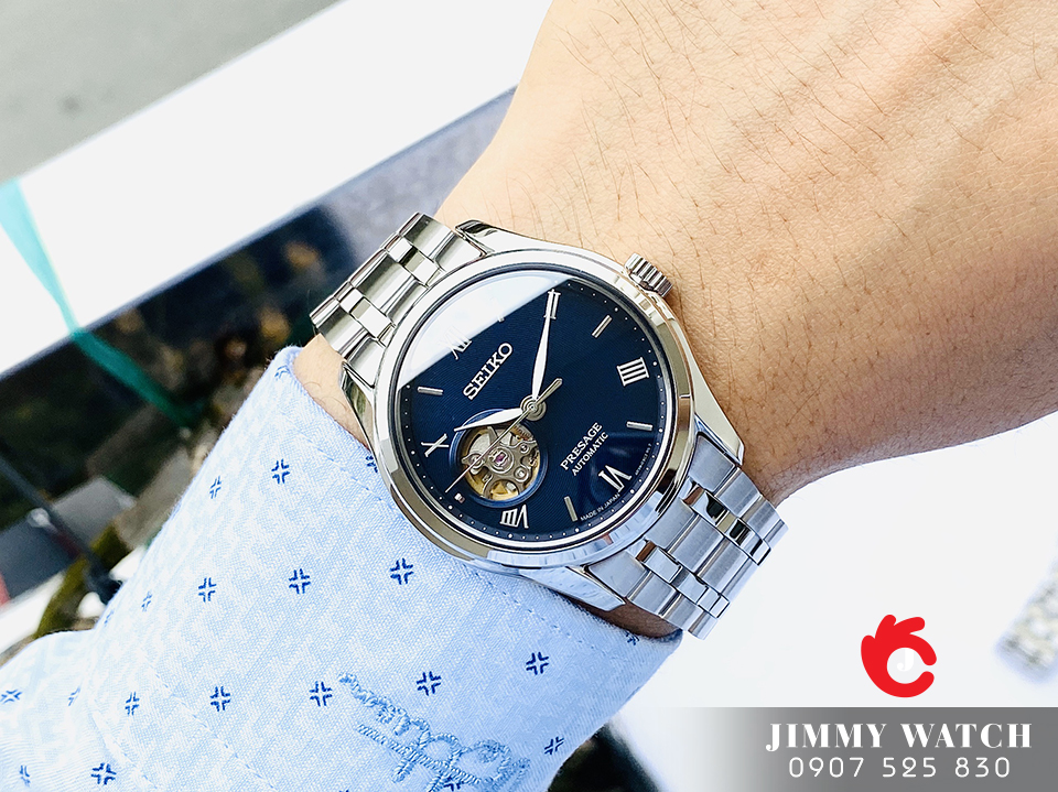 Là một trong những mẫu mới nhất 2020 cho của dòng Zen Garden “Karesansui”, SSA411J1 là một mẫu đồng hồ trái tim mở open haert góc 9H, mặt số màu xanh lam với các chữ số La Mã trên mặt số.
