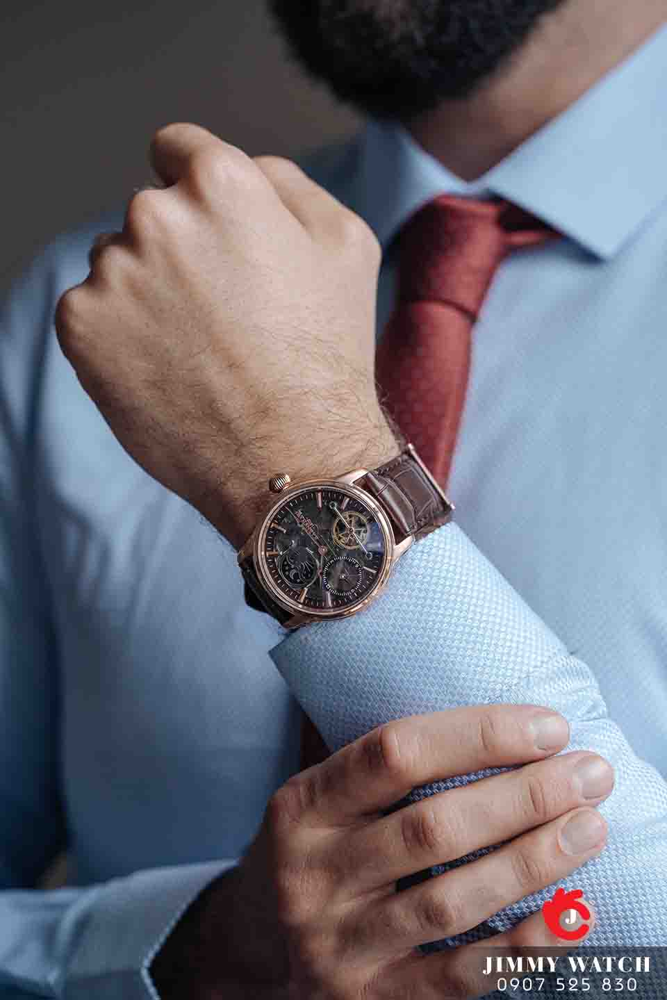 Mặt đồng hồ lộ cơ cực chuẩn, sắc nét đến từng chi tiết nhỏ nhất. Sự phối màu hài hòa tạo nên vẻ đẹp sang trọng, bắt mắt