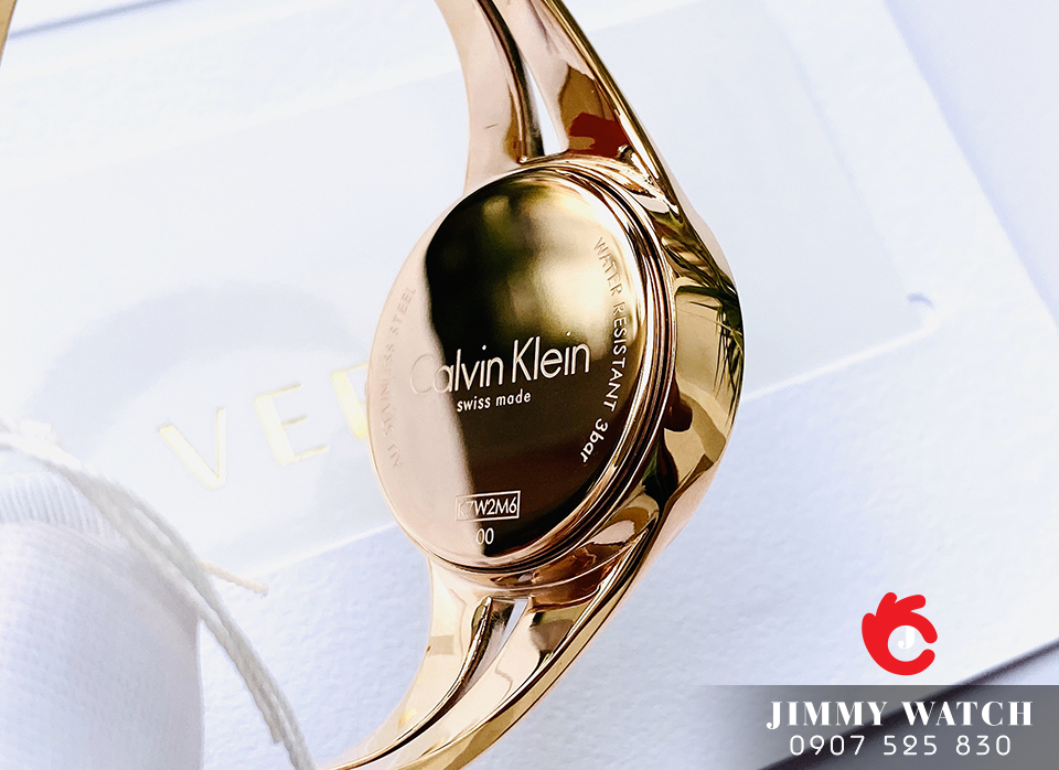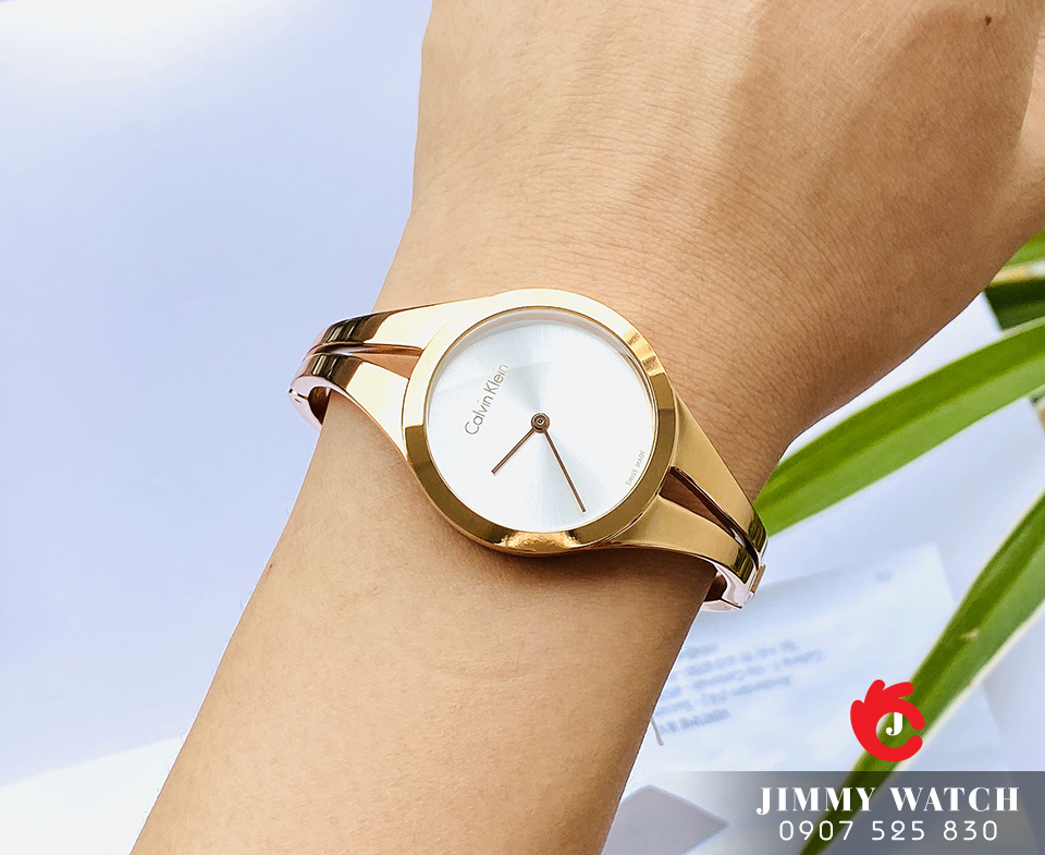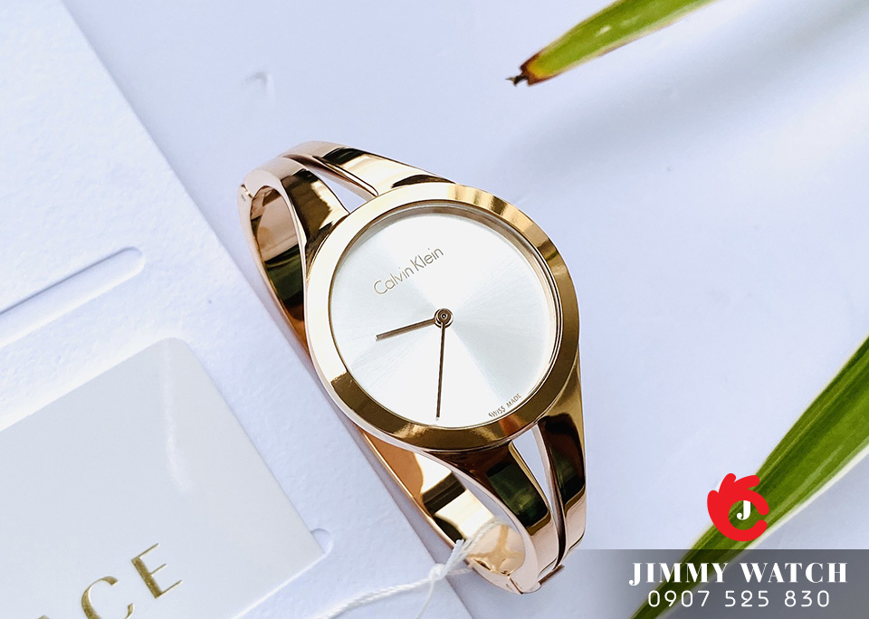 Mẫu Quartz series Addict thiết kế tối giản cho vẻ đẹp tinh tế. Vỏ & vòng đeo tay dạng lắc cố định khung làm bằng thép không gỉ. Viền mỏng, núm chỉnh dập logo CK sắc sảo. Mặt số trơn tối giản các chi tiết, kim gậy mảnh. Màu vàng hồng lên tay sang lắm luôn