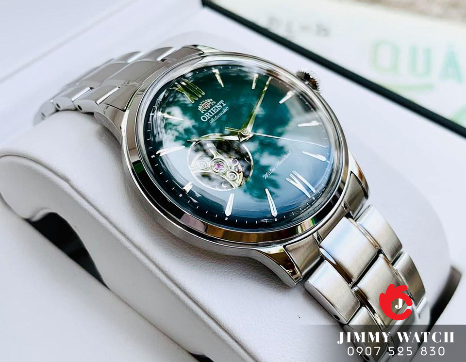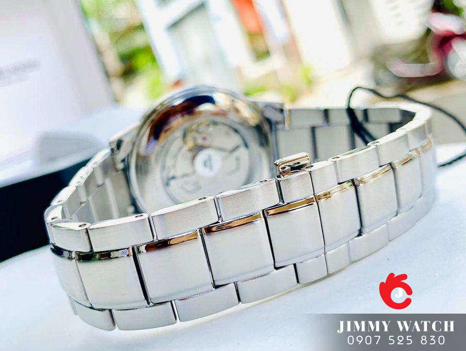 - Loại máy: Automatic. Mặt đáy lộ máy, máy automatic có lên cót tay giữ giờ 40 tiếng